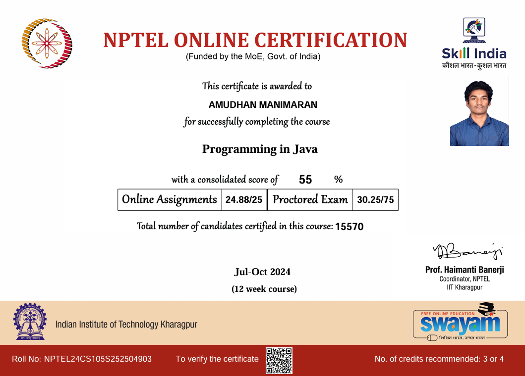 - Selected as one of the top 80 candidates from a nationally competitive cohort at SRMIST KTR for Samsung’s flagship Coding & Programming program.